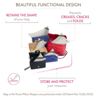 Protect your investments with around-the-clock TLC. When you aren’t running around town with your fave bag, store it with its Bag-a-Vie Pillow Shaper insert to preserve your handbag’s shape and help prevent unsightly creasing, folding and cracking. You can also treat your leather to our European leather care products keeping them looking supple and new for years to come!